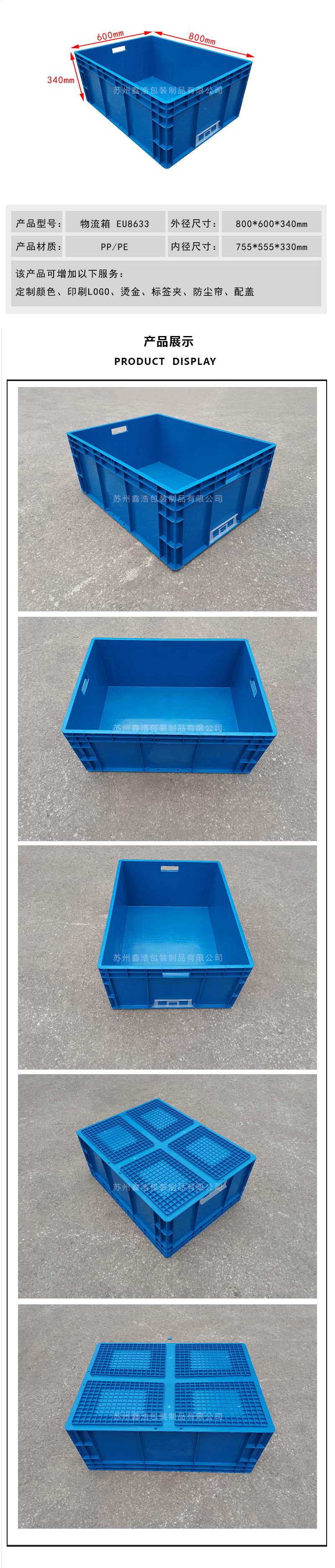 ●  蘇州鑫浩包裝制品有限公司專業(yè)研發(fā)生產(chǎn)各類物流箱、折疊箱、周轉(zhuǎn)箱、防靜電箱、塑料托盤(pán)等包裝產(chǎn)品,并提供