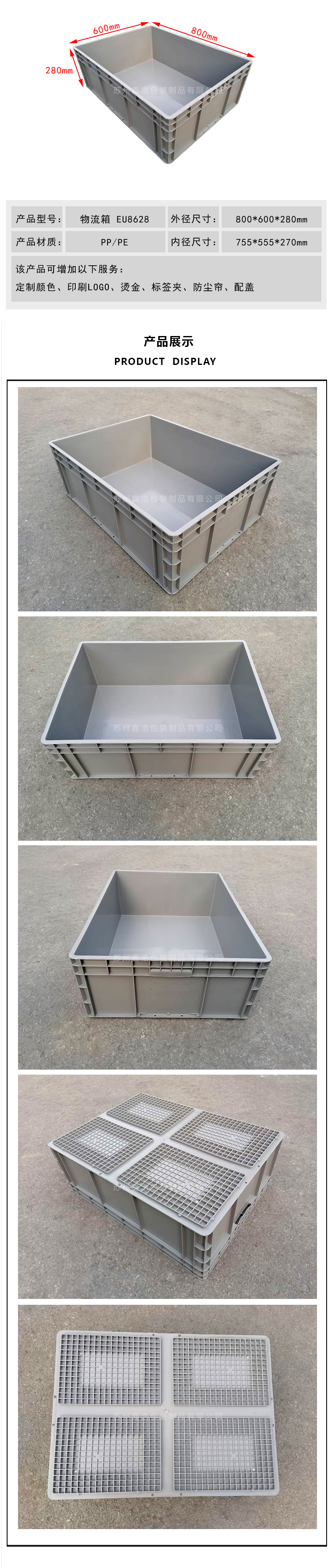 ●  蘇州鑫浩包裝制品有限公司專業(yè)研發(fā)生產(chǎn)各類物流箱、折疊箱、周轉(zhuǎn)箱、防靜電箱、塑料托盤等包裝產(chǎn)品,并提供