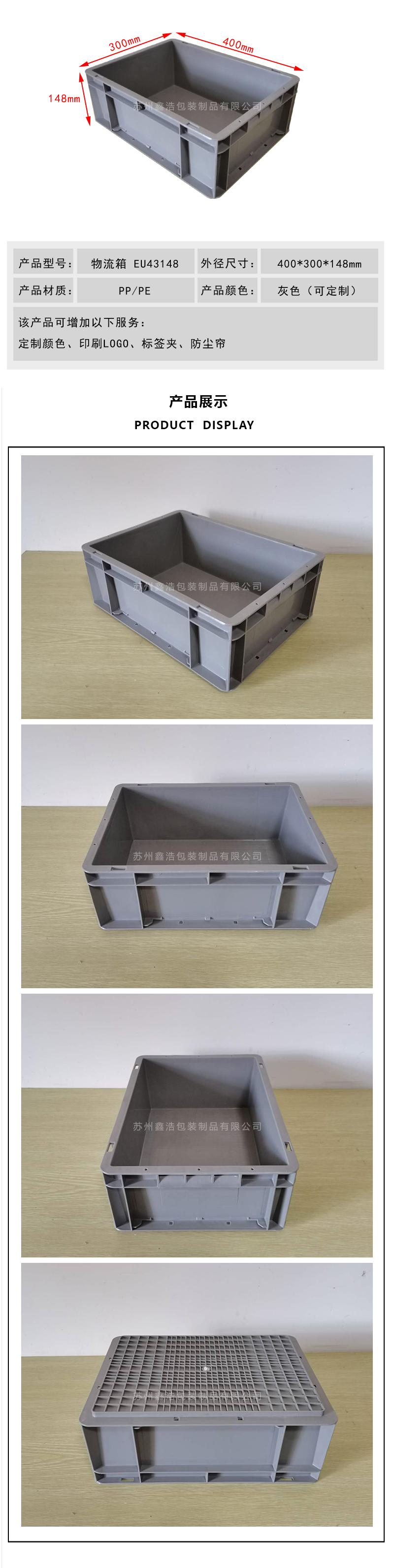 ●  蘇州鑫浩包裝制品有限公司專業(yè)研發(fā)生產(chǎn)各類物流箱、折疊箱、周轉(zhuǎn)箱、防靜電箱、塑料托盤等包裝產(chǎn)品,并提供